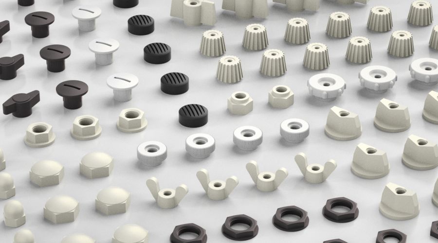poliamida para aplicaciones industriales: Arandelas, Casquillos y Forros, Conteras y tapones , Empuñaduras, Pomos para tornillos, pomos con insertos metálicos, separadores, tornillos, tuercas, bridas y tacos, etc.